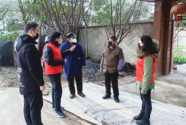 上派镇纪委工作人员逐户了解人员情况并宣传防疫知识。(姜鹏/摄)