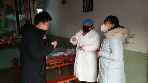 烔炀镇纪委书记和村医坚持每天上门为武汉返乡人员测量体温,并询问其居家隔离期间生活需求,真正做到隔离危险但不隔离爱。
