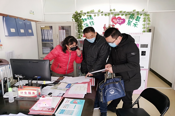 图为纪检监察干部到社区翻阅辖区内武汉返旌人员登记表,开展实地监督检查。