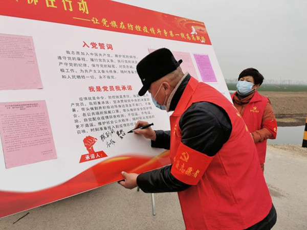 在疫情防控劝导点设立党员先锋岗,积极向群众宣传疫情防控知识