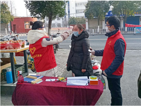 婚礼取消之后,他们积极关注疫情发展,在市委组织部号召青年党员志愿者积极参加“打赢疫情防控攻坚战”时,杨牧翔和王菊主动报名参加志愿服务,共同奔赴全市防疫形势最为严峻的龙子湖区火车站附近的一个小区。他们脱下美丽帅气的婚纱、西装,以口罩为盾,用喷壶作戟,穿上火热的志愿者背心,对疫情严防死守,誓用青春的烈火打赢这场与病毒间的反攻战“疫”。