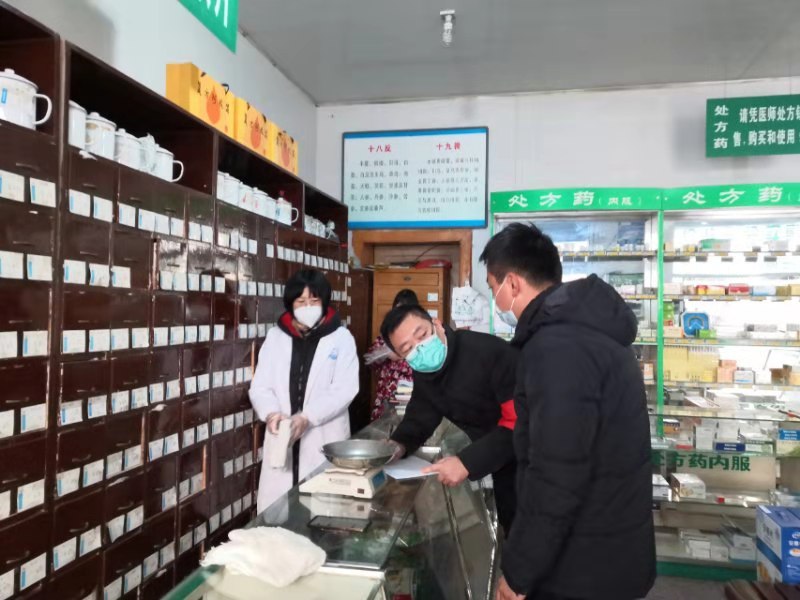 县纪委抽调纪检干部到社区一线,查看核对药店登记购药人员信息。