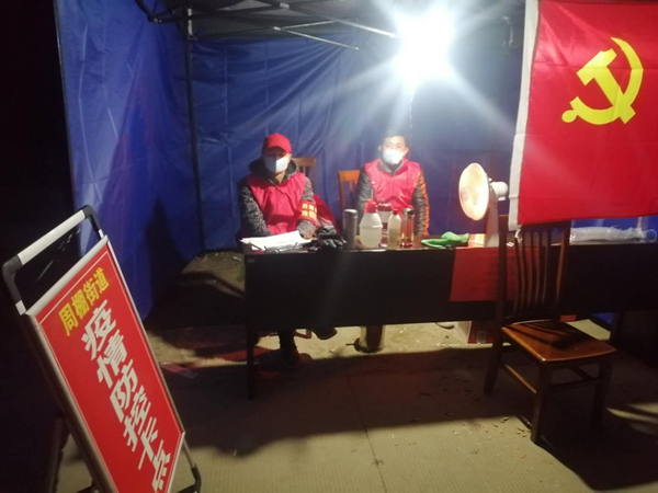 晚上11点,淮北大地春寒料峭,寒冷让人脸蛋变得彤红,夜色已经很浓了,空气里充满着雾气,人在外边站一会,衣服上能挂满雾水。简单跟值班人员交流和安排后,周彬就让其他值守人回家了,紧接着就在他只有一张木板床的简易集装箱宿舍里开始整理一天的卡点登记表、居民购物需求表。24小时值守的规定,他是带头人,强硬的要求别人回去休息后,陪伴他的只剩夜色星辰和那面飘扬在在风中的党旗。