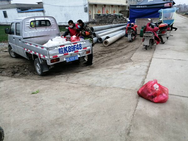 上午9点,陆陆续续有群众来卡点登记,填写他们需要购买的生活用品。这时候卡点变成了“代购点”,周彬同志拿出来居民购物需求表,详细的记录下每个群众的需求,有买菜的、有买药的、有充煤气的等等,他都一个不落的仔细登记好,待群众散去,他就开着自家的小货车,向周棚集镇驶去。