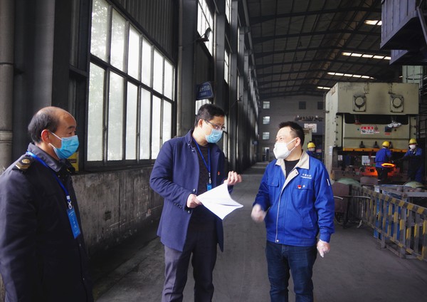 青阳县纪委监委在企业了解电力、交通等保障需求,监督检查有关部门服务保障措施落实情况