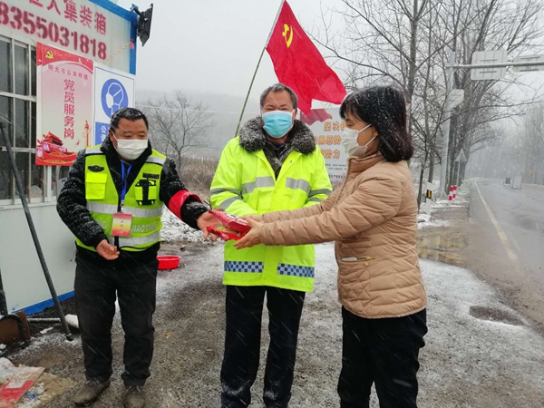 市纪委监委领导班子看望一线卡口执勤的工作人员,为他们送去棉大衣、暖宝宝等御寒物品