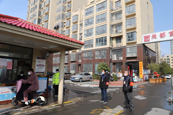 纪检监察干部在包保小区执勤,规范居民出入管理