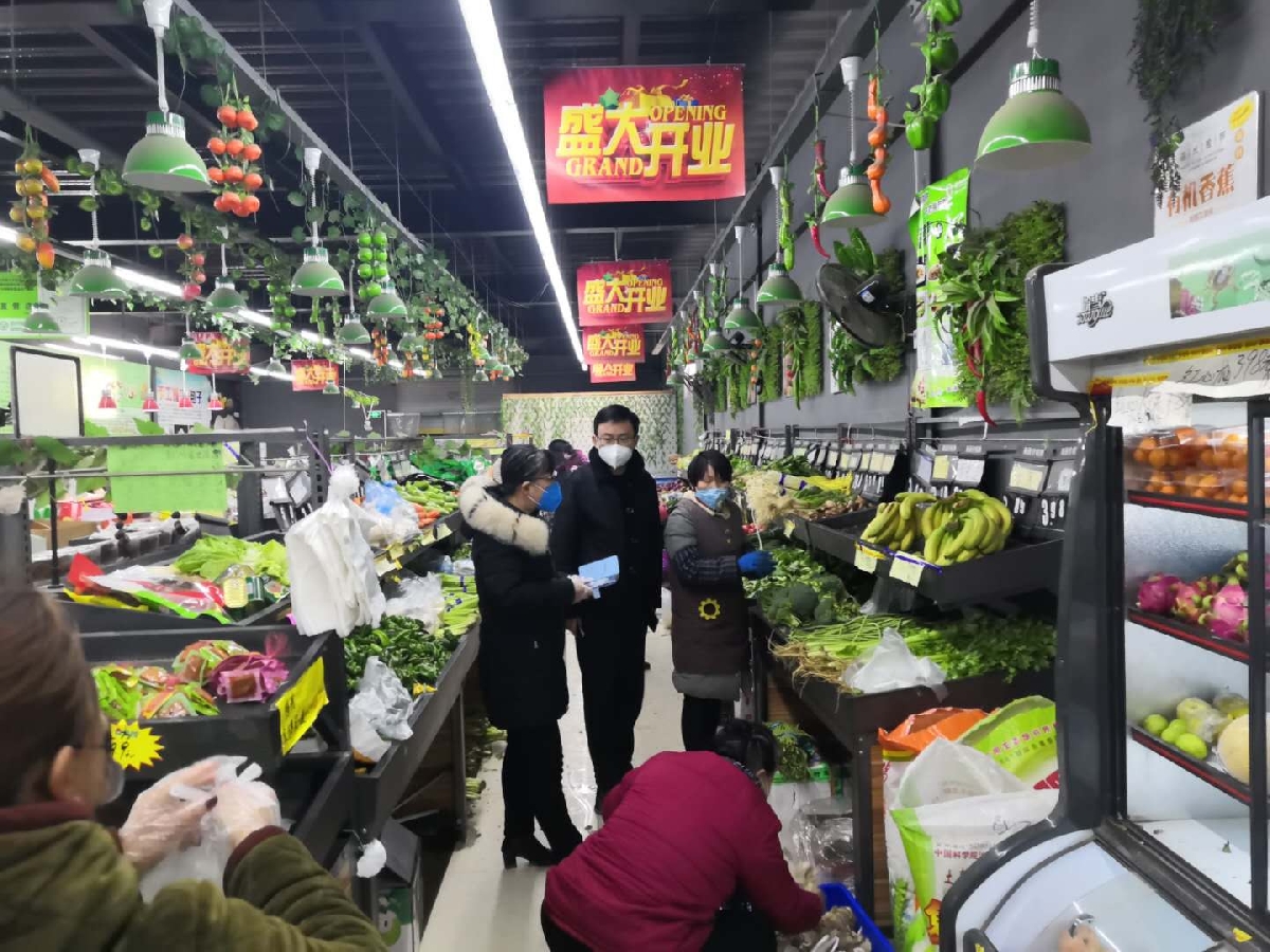 “保障群众生活稳定有序”,乡镇纪检干部深入超市了解蔬菜、生活用品的供应及价格情况。