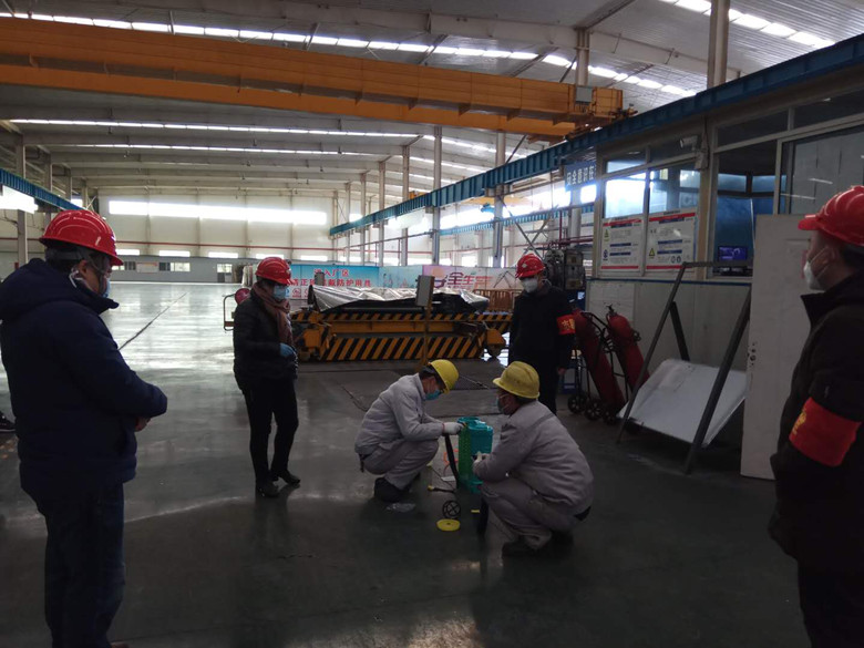 现场查看企业对厂区、门厅、生产设施等消杀防疫作业。