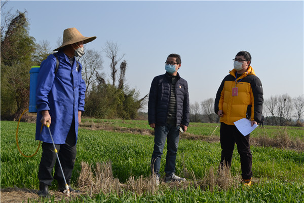 战疫情,抢农时。当前正值春耕备耕关键时节,郎溪县纪检监察机关聚焦监督首责,坚持问题导向,督促相关职能部门切实落实好春管春种各项措施,夯实农业生产基础,为春耕备耕保驾护航。图为该县凌笪乡纪委工作人员向农户询问了解当前化肥、农药等农资供应情况。