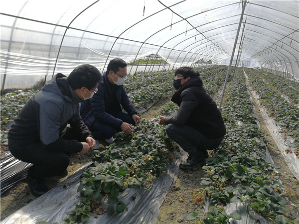 人勤春来早。旌德县纪检监察机关主动下沉一线,统筹推进疫情防控和助力农业生产。图为该县白地镇纪委书记汤寅辉带队奔赴高甲村草莓种植园,向种植户询问惠农资金申报、配套设施补贴以及生产销售情况,以“暖心”监督助力春耕复产。