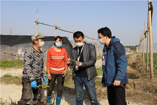 战疫情不误农时。广德市纪检监察机关督促各地各部门在抓好疫情防控工作的同时,努力抓好春耕物资储备供应、惠农政策宣传等工作。图为该市东亭乡纪委工作人员深入蔬菜大棚,督查了解疫情期间农产品产出情况,督促相关部门履职到位,积极协调帮助解决农户生产中存在的困难。