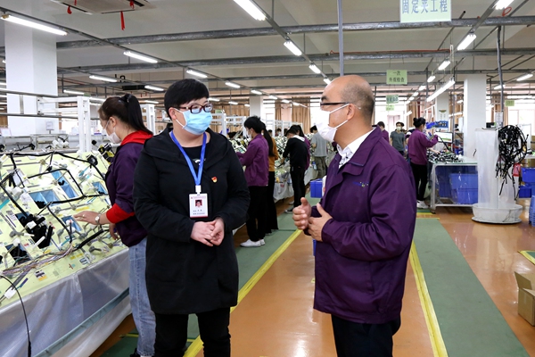 福建省建瓯市纪检监察干部深入企业生产一线,了解企业恢复生产中遇到的困难和问题,并督促相关职能部门履职尽责,助推复工复产。(福建省建瓯市纪委监委 黄健 摄)