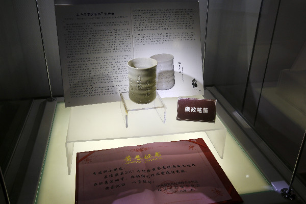 李夏同志生前陪同女儿一起制作的廉政笔筒