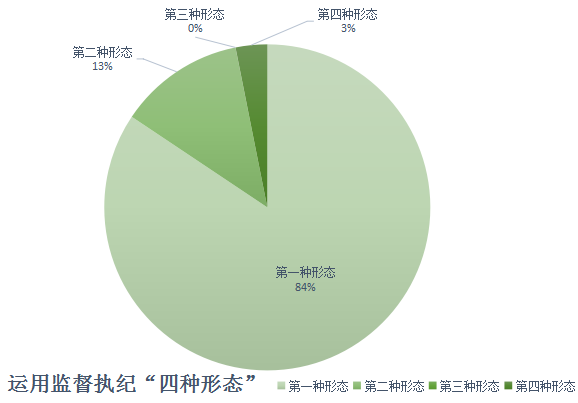 2020年第一季度,区纪委监委运用监督执纪“四种形态”处置32人次,其中第一种形态27人次,占84.4%;第二种形态4人次,占12.5%;第三种形态0人次,占0%;第四种形态1人次,占3.1%。