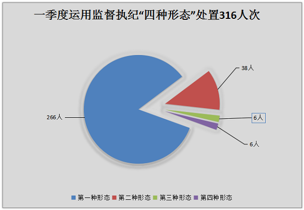 一季度,全县运用监督执纪“四种形态”处置316人次,其中第一种形态266人次,占比84.18%;第二种形态38人次,占比12.02%;第三种形态6人次,占比1.9%;第四种形态6人次,占比1.9%。(淮北市纪委监委)