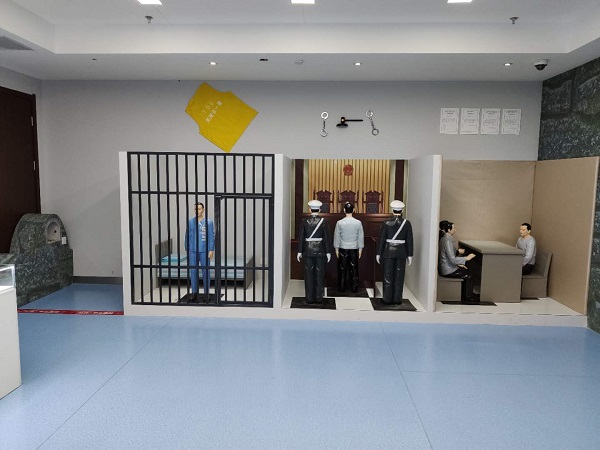 模拟场景分为谈话间、法庭、监狱三个小场景,对应案件调查、审判、服刑三个阶段,完整展示了违法违纪的严重后果。通过模拟增强代入感和体验感,以这种感同身受的模拟体验加深对违法违纪下场的认识。以此警醒业内人员常思贪欲之害,常怀律己之心,莫要成为“景中人”。
