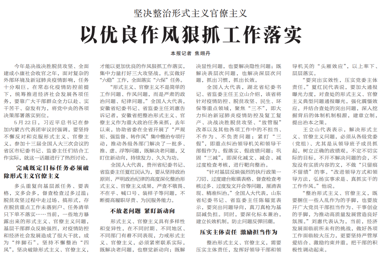廖建宇代表介绍:“我们建立包片联系制度,省纪委监委每名班子成员牵头包1县2乡镇,深入调查研究,加强业务指导,推动解决县级纪委‘零移送’、乡镇纪委‘零立案’问题。制定出台‘乡案县审’工作规定,规范乡镇(街道)案件审理流程,进一步提高基层办案质量。”