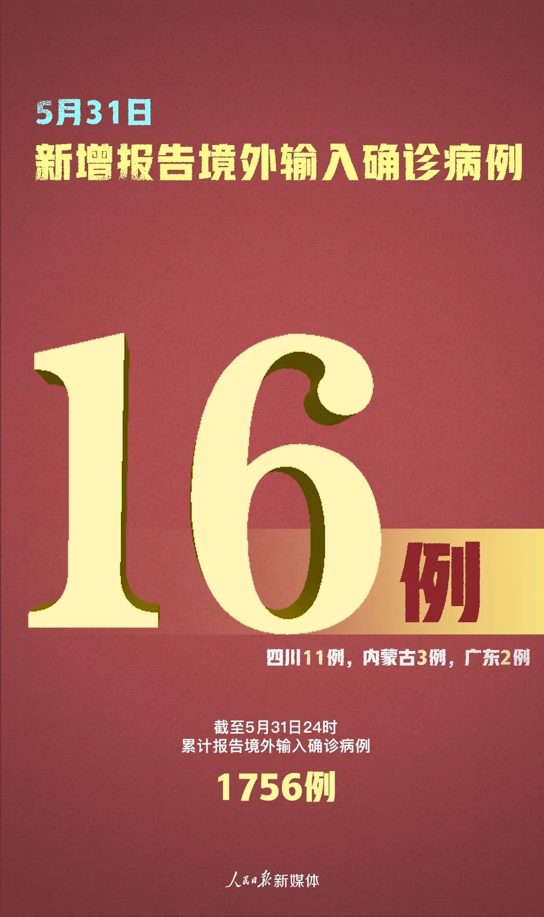 ●5月31日,全国连续8天无新增本土确诊和疑似病例,但新增境外输入确诊病例16例,为近一个月以来最高。