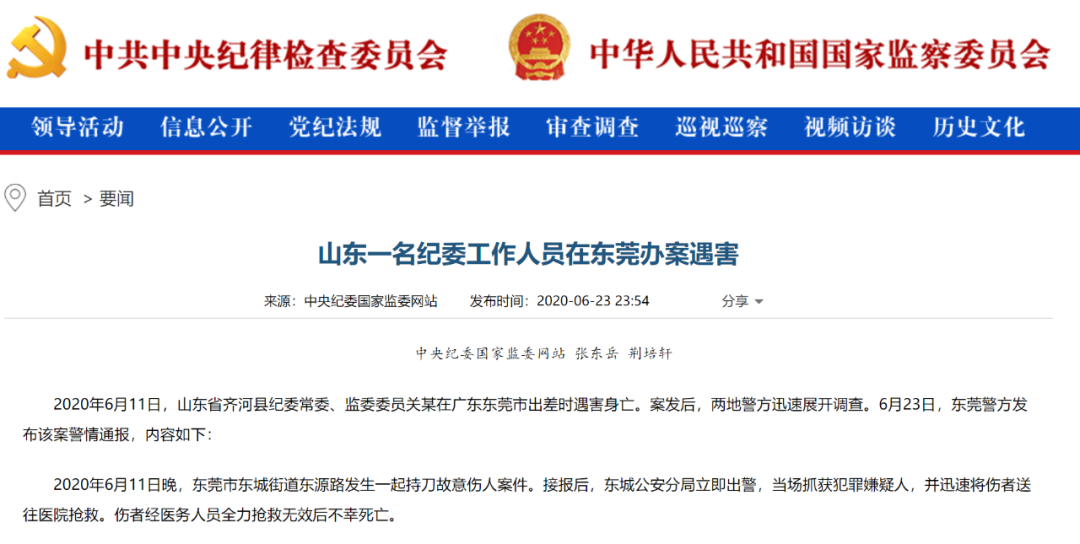 ●6月11日,山东省齐河县纪委常委、监委委员关某在广东东莞市出差时遇害身亡。6月23日,东莞警方发布该案警情通报:犯罪嫌疑人杨某曾因精神分裂症住院治疗,其怀疑关某一行的调查工作会影响到其个人岗位,继而影响工资收入,遂心生不满、决定报复调查组工作人员。专案组未发现杨某和该县纪委调查组成员之间存有关系或交集。