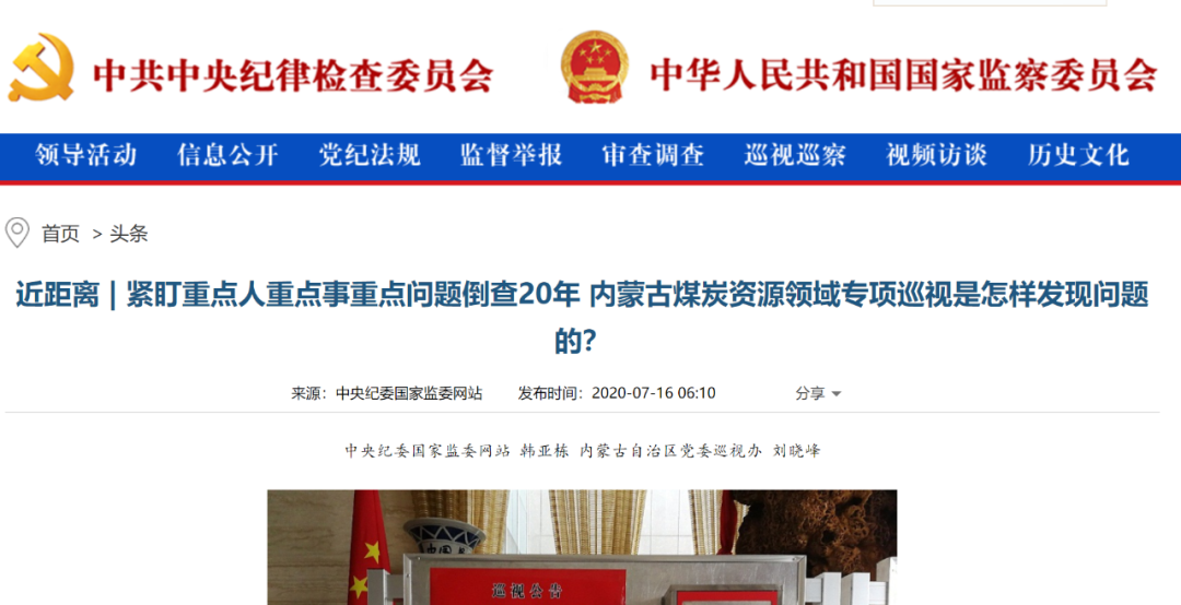 ●中央纪委国家监委网站15日发布采访报道,详细报道了内蒙古煤炭资源领域专项巡视中巡视组为发现问题所采取的有效举措,包括不搞面面俱到,注重寻找突破口、出其不意等。2020年3月23日至6月10日,内蒙古自治区党委派出7个巡视组,采取“一托二”方式对7个盟市、4个厅局、3个国有企业开展煤炭资源领域专项巡视,发现了一批高质量的问题和问题线索。