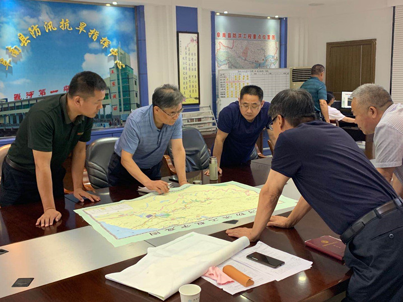市纪委监委督查组在阜南县防汛抗旱指挥中心详细查看蒙洼蓄洪区地形图,了解督查区域和作战地形,仔细询问县级指挥调度情况、防汛指挥部履职情况。