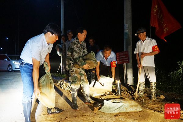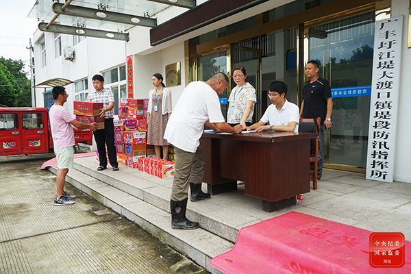 7月19日上午,安徽省池州市东至县的广丰圩江堤大渡口镇堤段防汛指挥所,在镇纪委干部监督下,将一批防汛生活物资发放给相关村子防汛值守点。(中央纪委国家监委网站 姜永斌)