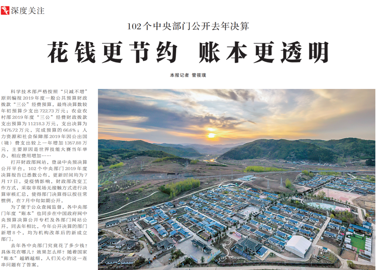 ●今天出版的中国纪检监察报深度关注专栏以《花钱更节约 账本更透明》为题,聚焦102个中央部门公开的去年决算。文章指出,中央部门落实“三公”支出“只减不增”的承诺效果明显。政府永远都应该过紧日子,但是仅仅依靠压减‘三公’经费是不够的,不仅需要财政管理的变革,更要行政管理体制的变革,必须从制度上下功夫。