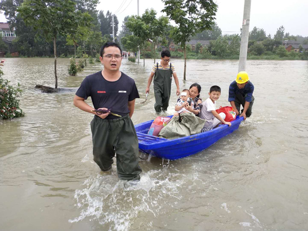 肥东县包公镇大许社区第一书记兼驻村扶贫工作队队长带领村两委干部紧急转移群众