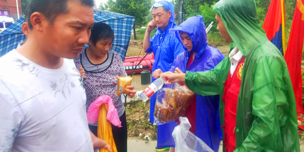 一方有难,八方支援。各类救援物资汇聚固镇,为搞好这次生活物资和救灾器材的发放工作,确保救灾物品发放公正、公开、公平,固镇镇纪委对救灾物品的每一个环节进行全程监督,以确保援助物资及时送到受灾群众手中。“让群众在安置点能吃上一口热乎的饭、睡上一张干爽的床,就是我们坚持的最大动力。”已在抗洪一线连续奋战60多个小时的固镇镇纪委书记张乐成疲惫的笑道。