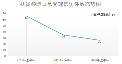 去年以来,扶贫领域日常受理信访件呈下降趋势,2020上半年受理扶贫领域信访件26件,同比下降60.6%。(滁州市纪委监委)