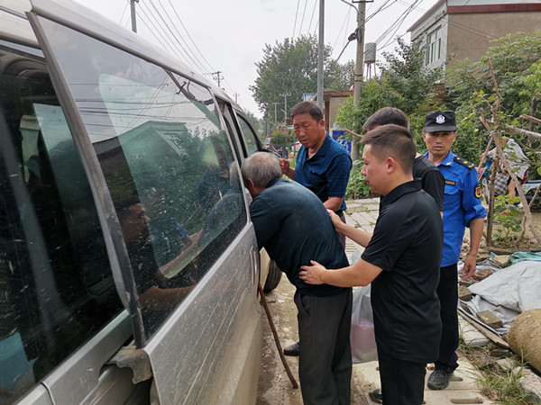 “老人家,你的腿脚不好,快收拾收拾,跟我们去撤离点吧,这里是行蓄洪区,太危险。”镇纪委书记杨琪接着投身到群众撤离工作中。