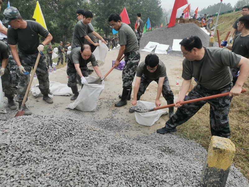 徐秘书长亲自上阵,冲锋在前,和我们一起卸砂石、装沙袋……这种高强度的抢险作业非常消耗体力,不到半小时,大家体力消耗都很大。看到我满头大汗,三支部书记,也是四室主任的郑国主动要求替换我,自己承担起体力消耗更大的搬运沙袋的任务,郑国主任用自己的实际行动鼓舞着我们年轻人。第五纪检监察室主任周乾坤曾经是一名空军部队指战员,在这次抢险中,他始终冲在前面,体现了一个军人的本色。