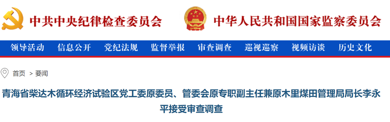●中央纪委国家监委网站13日发布通报:青海省原木里煤田管理局局长李永平涉嫌严重违纪违法,目前正接受青海省纪委监委纪律审查和监察调查。