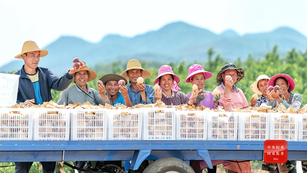 云南省砚山县大力开展石漠化治理,修复生态环境,带动了当地林果经济的发展,丰收的喜悦洋溢在农民的脸上。(云南省砚山县纪委监委供 汪斌 摄)