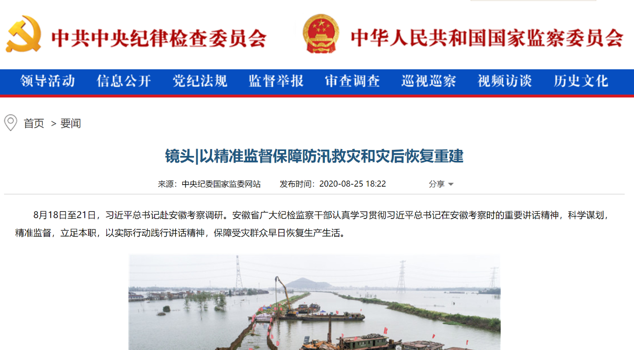 ●中央纪委国家监委网站25日以图集方式报道了安徽省广大纪检监察干部认真学习贯彻习近平总书记在安徽考察时的重要讲话精神,科学谋划,精准监督,立足本职,以实际行动践行讲话精神,保障受灾群众早日恢复生产生活。