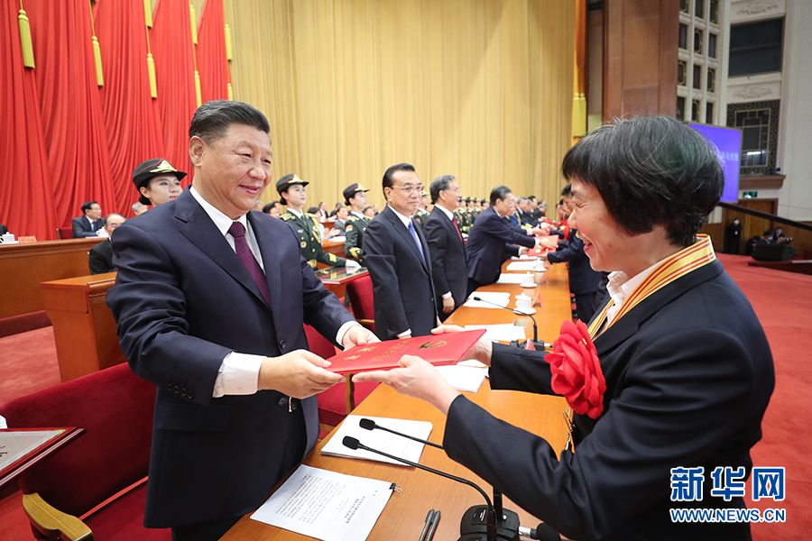 在雄壮的《向祖国英雄致敬》乐曲声中,习近平为国家勋章和国家荣誉称号获得者一一颁授勋章奖章,并同他们亲切握手、表示祝贺。随后,4位国家勋章和国家荣誉称号获得者受邀到主席台就座。全场响起一阵阵热烈的掌声。