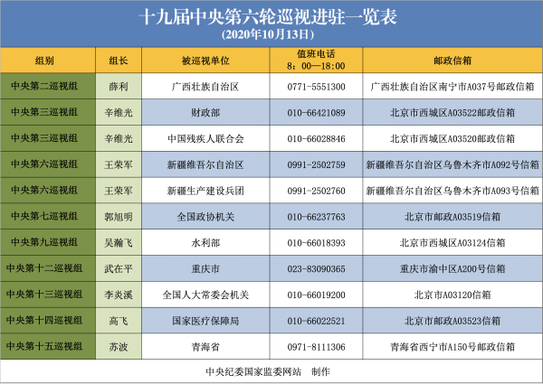●中央纪委国家监委网站13日公布:十九届中央第六轮巡视继续进驻11家单位。