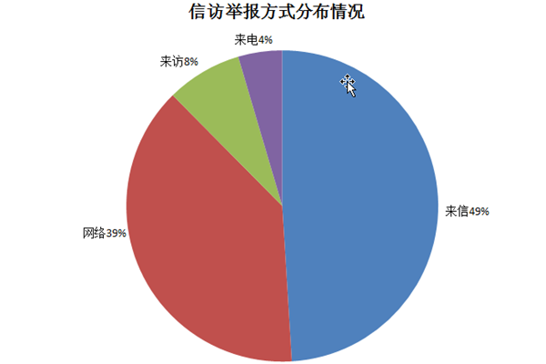 从举报方式来看,来信举报75件,占比49%;网络举报59件,占比39%;来访12件,占比8%;来电7件,占比4%。