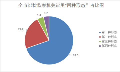 全市纪检监察机关运用“四种形态”批评教育帮助和处理共1019人次。其中,运用第一种形态批评教育帮助709人次,占总人次的69.6%;运用第二种形态处理228人次,占22.4%;运用第三种形态处理44人次,占4.3%;运用第四种形态处理38人次,占3.7%。