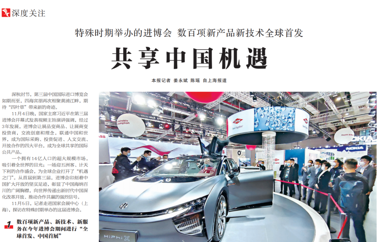 ●今天出版的中国纪检监察报深度关注专栏聚焦4日开幕的第三届中国国际进口博览会。文章指出:中国在确保防疫安全前提下如期举办这一全球贸易盛会,体现了中国同世界分享市场机遇、推动世界经济复苏的真诚愿望。