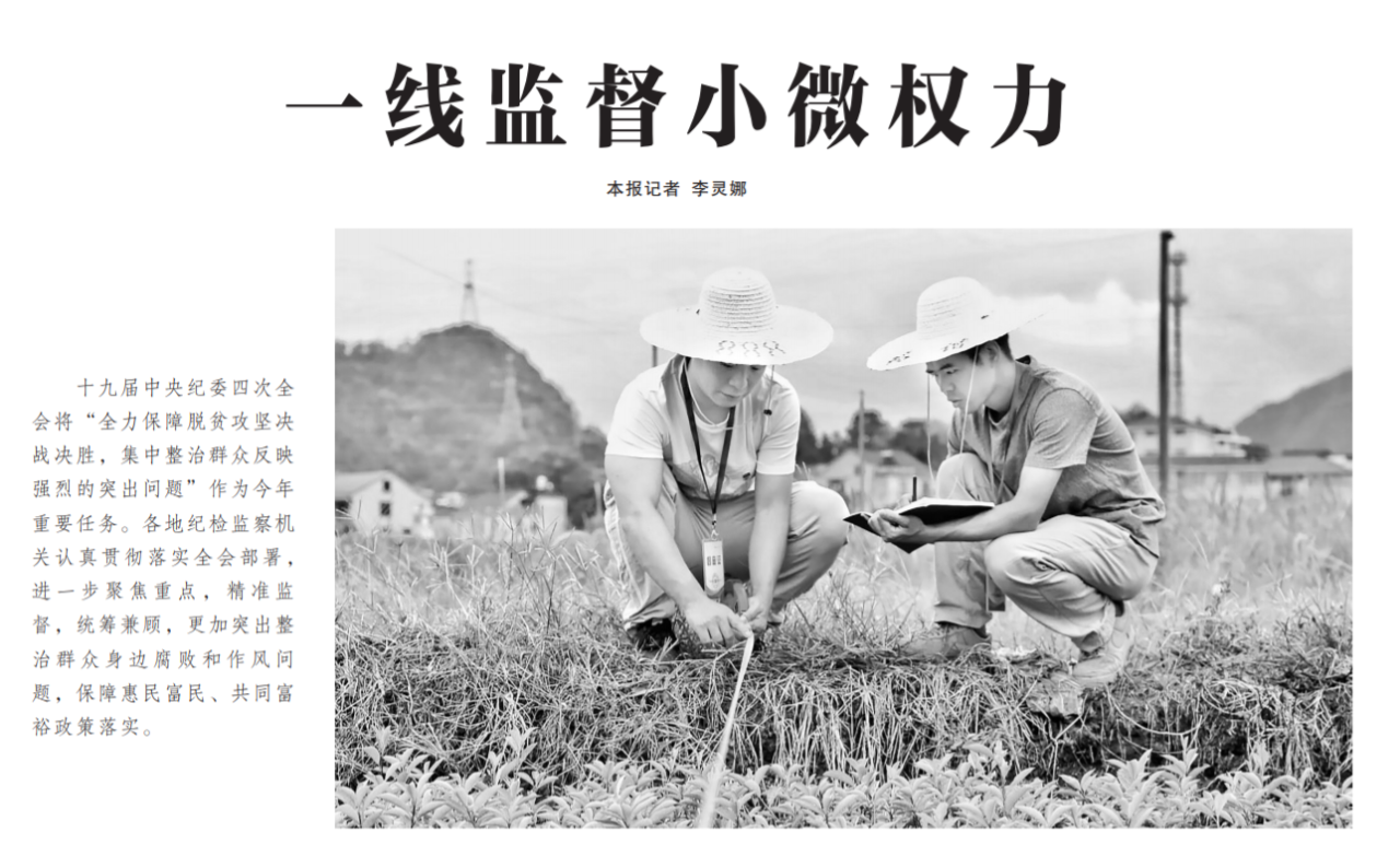 ●今天出版的中国纪检监察报以《一线监督小微权力》为题,报道了各地纪检监察机关更加突出整治群众身边腐败和作风问题,保障惠民富民、共同富裕政策落实的相关举措,包括深入基层一线走访,清单化管理小微权力等。