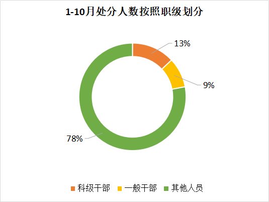1-10月,受处分人员中,按照部门划分,政府机关12人,审判机关1人,事业单位6人,企业单位5人,农村社区43人,其他1人。
