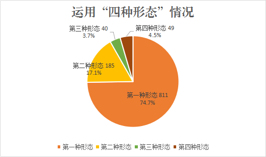 1至10月,综合运用“四种形态”批评教育帮助和处理1085人次,其中运用第一种形态批评教育帮助811人次,占总人次的74.7%;运用第二种形态处理185人次,占比17.1%;运用第三种形态处理40人次,占比3.7%;运用第四种形态处理49人次,占比4.5%。