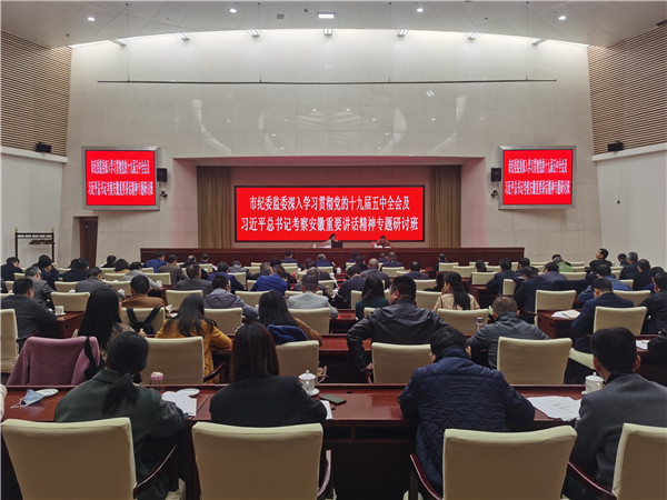 研讨班邀请了安徽省委党校(行政学院)副校长(副院长)江观伙教授和经济学教研部孟天琦博士,分别就十九届五中全会和习近平总书记考察安徽重要讲话精神作了专题辅导报告。此次培训还结合纪检监察工作,分级分类组织开展了交流研讨。