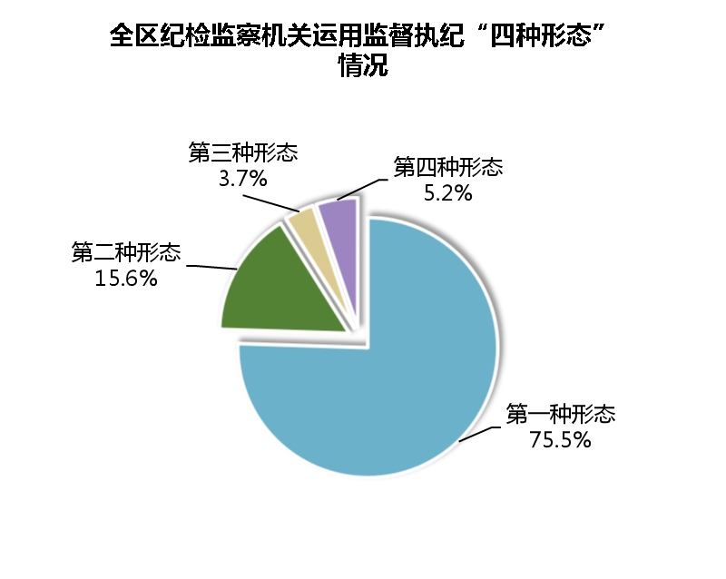 1—11月,全区纪检监察机关运用“四种形态”批评教育帮助和处理327人次,其中,运用第一种形态批评教育帮助247人次,占“四种形态”处理总人次的75.5%;第二种形态51人次,占15.6%,第三种形态12人次,占3.7%;第四种形态17人次,占5.2%。