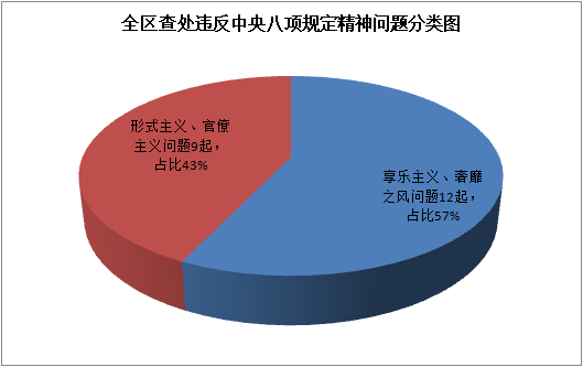 查处问题类型包括两大类,即形式主义、官僚主义问题和享乐主义、奢靡之风问题,分别占比43%、57%。