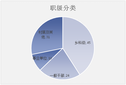 从反映职级看,涉及乡科级干部55人次,占41%,一般干部24人次,占22%,事业单位10人次,占9%,村居及其他31人次,占28%。