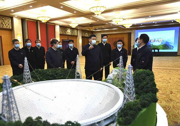 习近平通过视频察看“中国天眼”现场,并同总控室的科技工作者代表连线,向他们并向全国广大科技工作者拜年。习近平强调,全面建设社会主义现代化国家,必须坚持科技为先,发挥科技创新的关键和中坚作用。他勉励广大科技工作者以南仁东等杰出科学家为榜样,大力弘扬科学家精神,勇攀世界科技高峰,在一些领域实现并跑领跑,为加快建设科技强国、实现科技自立自强作出新的更大贡献。