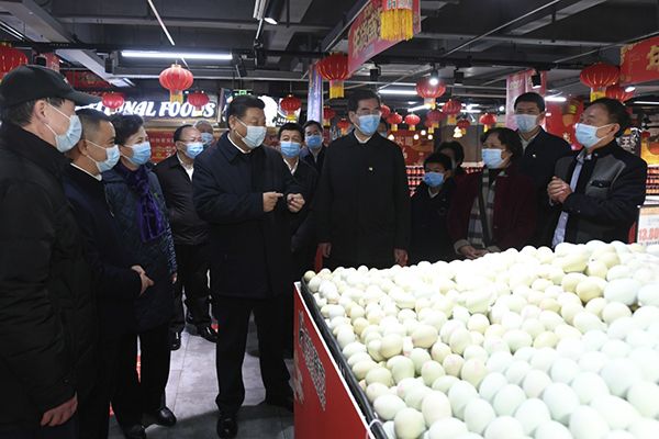 前来置办年货的群众热情向总书记问好。习近平亲切询问大家年货备齐没有。习近平强调,各级党委、政府和领导干部要把事关百姓切身利益的事情抓实抓好,尤其要落实防疫措施,加强食品安全监管,确保百姓过年安心、放心、舒心。